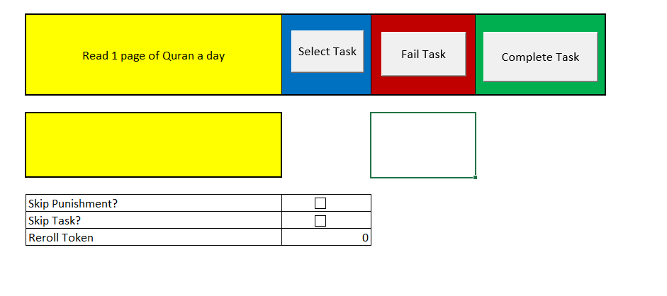 Then, in a different worksheet, I put the list of tasks I would like to work on in a weekly basis: